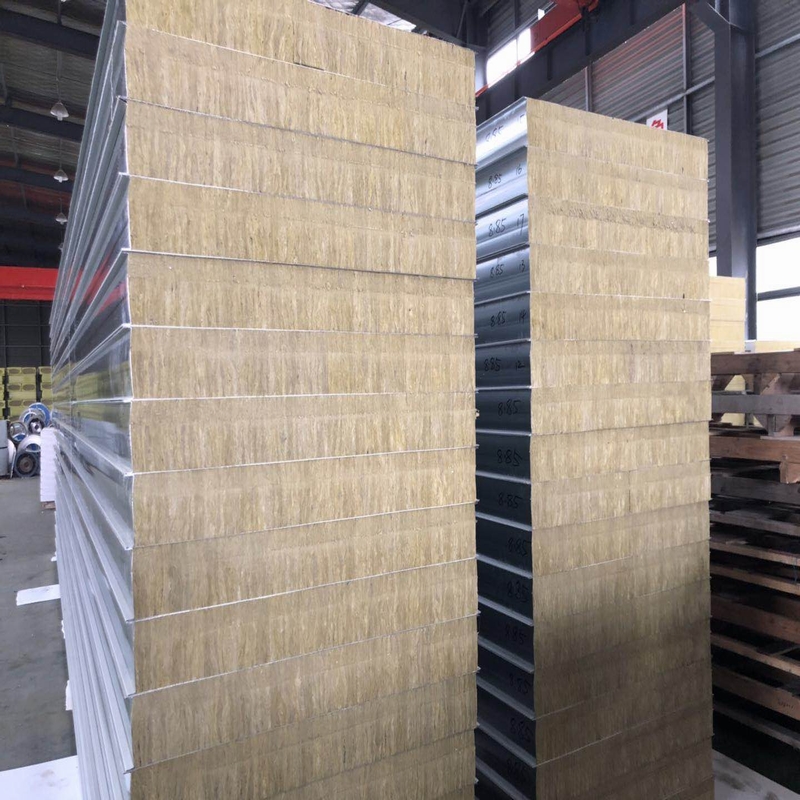 4、岩棉夹芯板:多孔结构,开孔性材料,隔音好,防火性能好,导热系数低,适用于华北华南等地,对方或要求较高的建筑。
