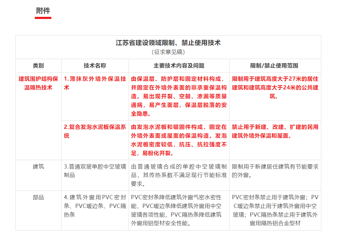 【征求意见】江苏限制薄抹灰外墙外保温技术应用于高层建筑